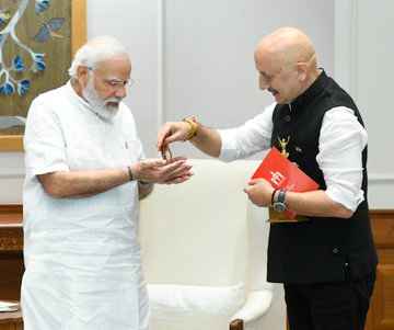 Anupam Kher पीएम नरेंद्र मोदी के मुरीद हैं। हाल ही में उन्होंने प्रधानमंत्री (Prime Minister Narendra Modi) से मुलाकात की और उन्हें एक खास तोहफा दिया। Anupam Kher ने अपने ट्विटर अकाउंट पर पीएम मोदी के साथ हुई मुलाकात की तस्वीरें पोस्ट की हैं।