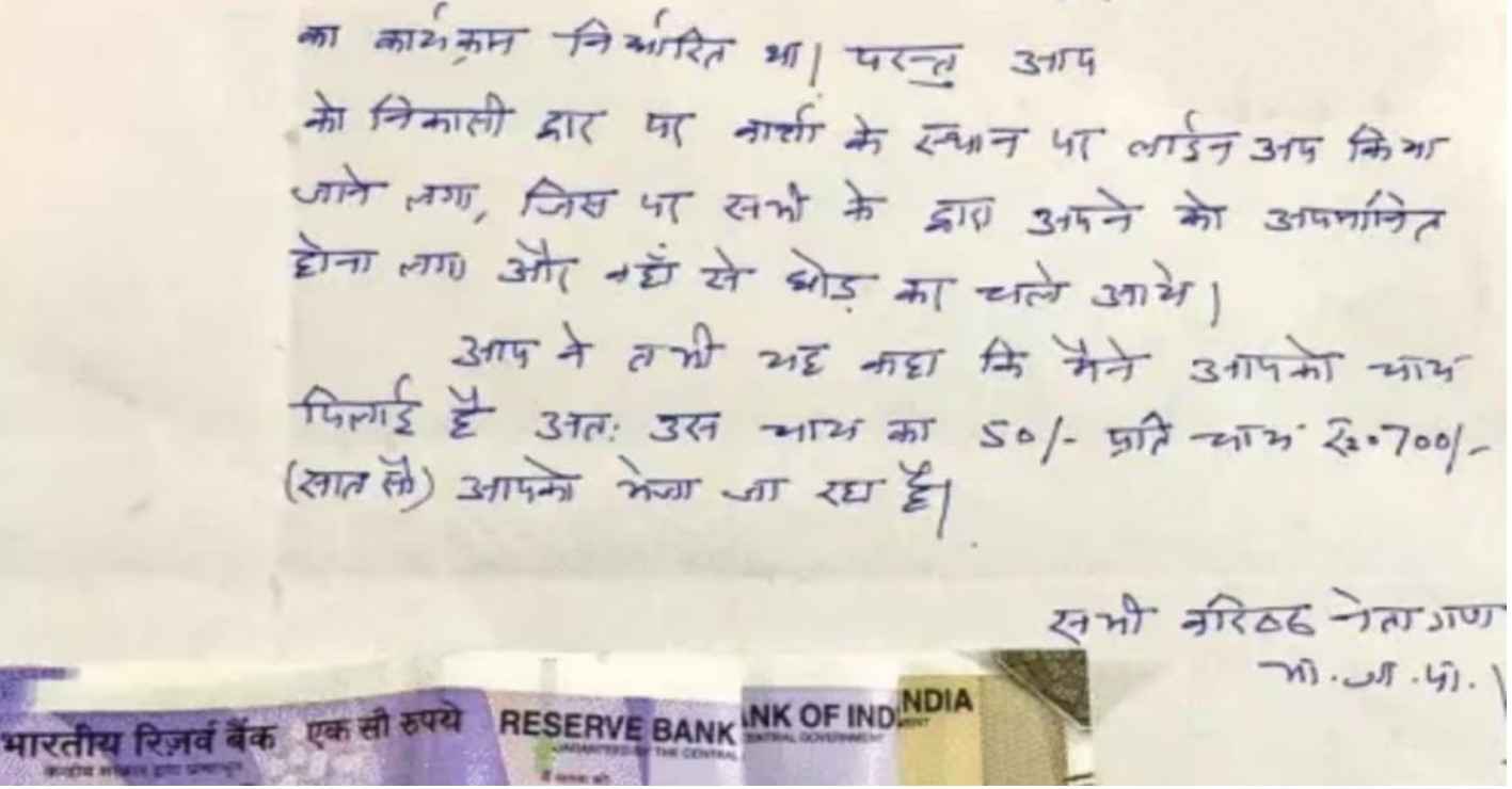 इसके बाद, एक नेता ने एक कार्यकर्ता के माध्यम से डीएम को लिखित संदेश पहुंचाया, जिसमें 700 रुपए थे। डीएम ने इसे स्वीकार करने से इनकार किया और पैसे के साथ लिखित संदेश को डीएम ऑफिस के माध्यम से भेजने का वादा किया है।