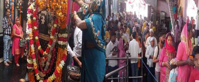 भक्तों का उमड़ा सैलाब, मंदिर में लगी लंबी कतारें