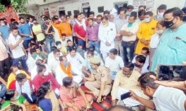 खतौली। पिछले दिनों मिले धर्मांतरण मामले को लेकर गुस्साए हिंदू जागरण मंच के कार्यकर्ताओं ने कोतवाली पर धरना दिया और कोतवाल को भी झुलसाती धूप में अपने बीच बैठा लिया।