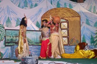 Ralila_Muzaffarnagar टाउन हॉल के मैदान में स्थित शहर रामलीला में दूसरे दिन रावण का भाइयों सहित ब्रह्मा जी से वरदान प्राप्त करना एवं रावण वेदवती संवाद तथा जानकी जन्म का सजीव चित्रण प्रस्तुत किया गया