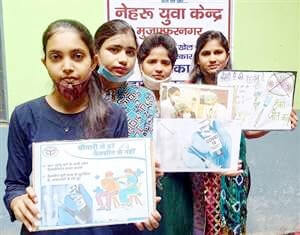 मुजफ्फरनगर। स्वास्थ्य विभाग की ओर से चलाए गए कोविड-१९ क्लस्टर टीकाकरण अभियान की जागरूकता के लिए नेहरू युवा केंद्र से जुड़ी स्वयं सेविकाओं ने पेंटिंग और पोस्टर के जरिये १८ वर्ष से ऊपर की आयु के लोगो से आह्वान किया कि आधार कार्ड लेकर बूथ पर आएं और कोरोना निरोधक वैक्सीन लगवाएं।
