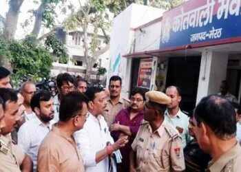राजस्थान की जोधपुर पुलिस ने आरोपी को मुखबिर की सूचना पर गाजियाबाद से पकड़ मवाना ले आई और ठगी करने वाले आरोपी द्वारा सोना बिक्री करने वाले सराफा की दुकान पर पहुंची, लेकिन सराफा व्यापारी दुकान बंद कर रफूचक्कर हो गया। इसी क्रम में सराफा व्यापारी थाने में पहुंचे ओर इंस्पेक्टर से वार्ता की।