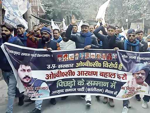 आरक्षण लागू होने तक आंदोलन जारी रहेगा-आजाद समाज पार्टी जिला अध्यक्ष जगदीश पाल ने कहा कि जब तक यह सरकार निकाय चुनाव में ओबीसी आरक्षण लागू नहीं करती तब तक उनकी पार्टी आंदोलन को जारी रखेगी। कहां कि प्रदेश की एक बड़ी आबादी को उसके अधिकारों से विरत किया जा रहा है।