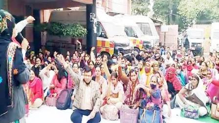 Muzaffarnagar News:मुजफ्फरनगर। प्रदेश एनएचएम संविदा स्वास्थ्य कर्मचारी संघ के आह्वान पर जिले के राष्ट्रीय स्वास्थ्य मिशन संविदाकर्मियों ने मांगे पूरी न होने पर बुधवार को हड़ताल कर दी है। जनपद की समस्त स्वास्थ्य इकाई सहित कोविड टीकाकरण व स्वास्थ्य सेवाओं (आकस्मिक स्वास्थ्य सेवाओं को छोड़कर) का बहिष्कार कर स्वास्थ्य कर्मी सीएमओ कार्यालय के बाहर धरना देकर बैठ गए। प्रदर्शन करते हुए मांगे पूरी न होने तक हड़ताल समाप्त न करने की घोषणा की।