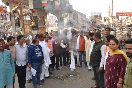 Muzaffarnagar News: तुलना आतंकी संगठनों से करने पर हिन्दू संगठनों ने कांग्रेस का पुतला दहन किया