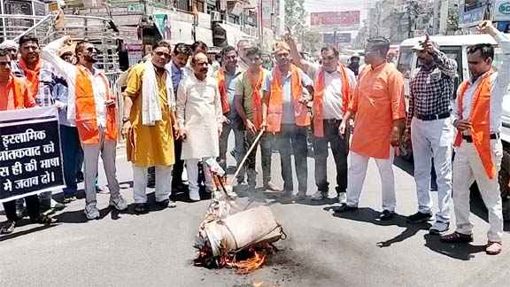 जहां उन्होंने इस्लामिक आतंकवादी का पुतला दहन किया। जिला अध्यक्ष लोकेश सैनी ने कहा जम्मू कश्मीर के राज्यपाल मनोज सिन्हा लगातार मीडिया में आकर दावा करते हैं कि जम्मू कश्मीर से आतंकवाद पूरी तरह समाप्त हो चुका है मगर मां वैष्णो देवी व शिव शिवखोडी के दर्शन कर लौट रही श्रद्धालुओं की बस पर जिस तरह आतंकवादियों ने घात लगाकर हमला किया है इससे साबित होता है कि जम्मू कश्मीर में अभी भी आतंकवादी सि य है