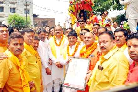 समस्त ब्राहमण समाज की और से भगवान श्री परशुराम जन्मोत्सव पर श्री परशुराम जन्मोत्सव समिति के तत्वाधान मे नगर के टाउन हाल मैदान से शोभा यात्रा निकाली गई। कार्यक्रम मे मुख्य अतिथि के रूप मे केन्द्रीय राज्यमंत्री डा.संजीव बालियान,प्रभारी मंत्री दिनेश प्रताप सिह, जिला पंचायत अध्यक्ष डा.वीरपाल निर्वाल, एमएलसी धर्मेन्द्र भारद्वाज, भाजपा जिलाध्यक्ष विजय शुक्ला एवं जिला पंचायत सदस्य पंडित श्री भगवान शर्मा,पंडित ब्रहम प्रकाश शर्मा आदि का कार्यक्रम मे पहुंचने पर आयोजन समिति द्वारा पटका पहना कर स्वागत किया गया तथा स्मृति चिन्ह देकर सम्मानित किया गया।