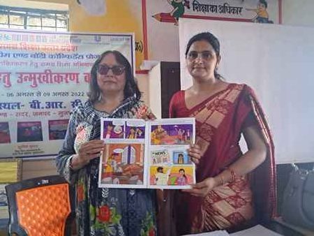 बीआरसी पर प्रशिक्षण का शुभारंभ डीसी प्रशिक्षण सुशील कुमार बीएसए ऑफिस ने किया इस दौरान संदर्भ दाता मीरा शर्मा अंजू गौड ने सदर ब्लाक के समस्त जूनियर हाई स्कूल से आए शिक्षक शिक्षिकाओं को तीन दिवसीय प्रशिक्षण में भागीदारी कराई दोनों टेनर शिक्षिकाओं ने शिक्षकों के लिए मार्गदर्शिका आधा फ़ुल कॉमिक, बुक्स ट्रेनिंग मॉड्यूल के आधार पर व लघु फिल्मों के आधार पर और पीपीटी के माध्यम से पढ़ाया और कार्यशाला में शिक्षकों को यह गुर सिखाया कि वह विद्यालय के अंदर किस तरह से लिंग भेद के प्रति नजरिया बदल सकते हैं और समाज को मजबूत कर सकते हैं