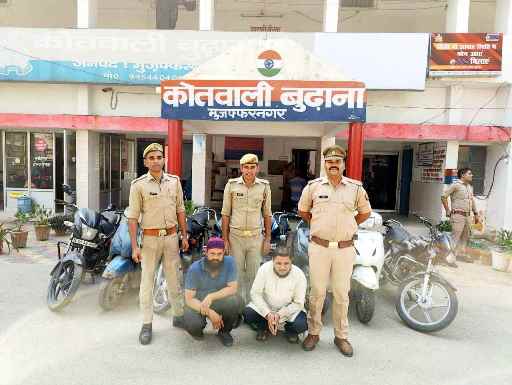 बुढ़ाना। (Muzaffarnagar News) थाना बुढाना पुलिस द्वारा दौराने चेकिंग ०२ शातिर अंतरराज्यीय वाहन चोर अभियुक्त गिरफ्तार किये जिनके कब्जे से चोरी की ०५ मोटरसाइकिल, ०३ स्कूटी बरामद की।