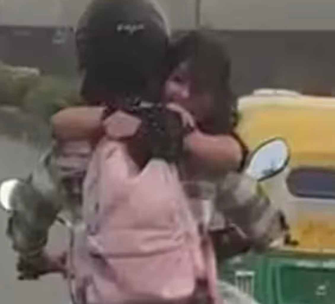 वीडियो में पुरुष को बाइक चलाते और महिला को पेट्रोल टंकी पर चालक की ओर मुंह करके बिना हेलमेट के बैठे और चालक को गले लगाते हुए देखा जा सकता है. आरोपी दुपहिया चालक को कई वाहनों को ओवरटेक करते भी देखा जा सकता है.