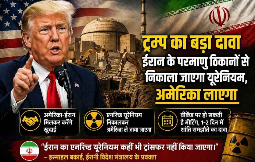 अमेरिका के राष्ट्रपति Donald Trump के हालिया बयान ने अंतरराष्ट्रीय राजनीति और परमाणु कूटनीति में नई बहस छेड़ दी है। उन्होंने दावा किया कि अमेरिका और Iran मिलकर ईरान के परमाणु ठिकानों की खुदाई करेंगे और वहां मौजूद एनरिच्ड यूरेनियम को निकालकर अमेरिका ले जाया जाएगा। इस बयान के सामने आते ही वैश्विक रणनीतिक हलकों में हलचल तेज हो गई।