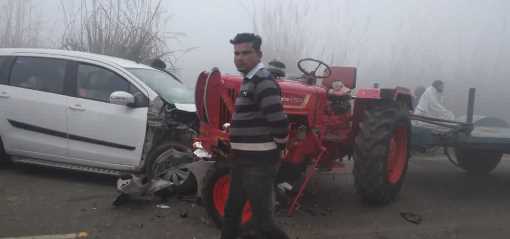 बताया जा रहा है कि एक परिवार बिजनौर से कार द्वारा दिल्ली जा रहा था कि अचानक सामने से घने कोहरे के चलते ट्रैक्टर ने उनकी कार में टक्कर जोर दार टक्कर मार दी